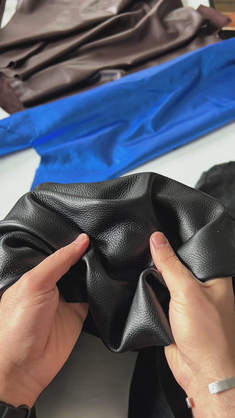 Black Natural Grain Chrome-Tanned Cowhide – Deer-Tanned Process, Full Aniline Finish, 1.1–1.3 mm (3 oz), ~20 Sq Ft (Also Available in 10 Sq Ft)
