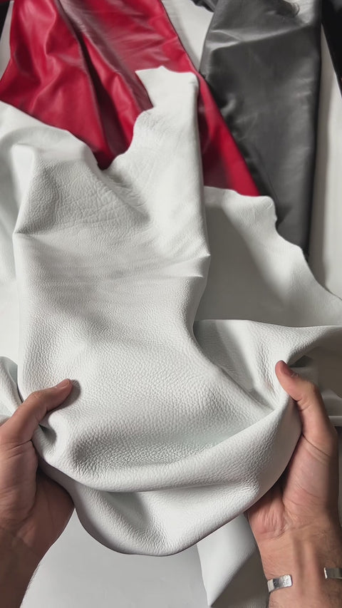 White Natural Grain Chrome-Tanned Cowhide – Deer-Tanned Process, Full Aniline Finish, 1.1–1.3 mm (3 oz), ~20 Sq Ft (Also Available in 10 Sq Ft)